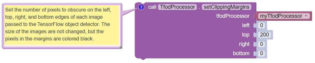 From the same Blocks palette, pull out the ``setClippingMargins`` Block. Adjust the four margins as desired, in units of pixels.