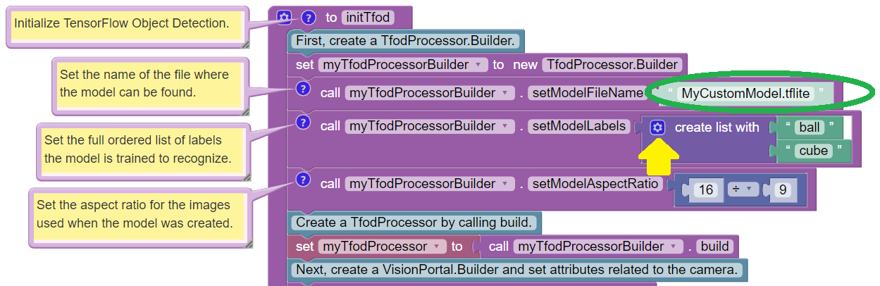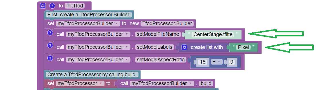 Scroll down in the OpMode, to the Blocks Function called “initTfod”.