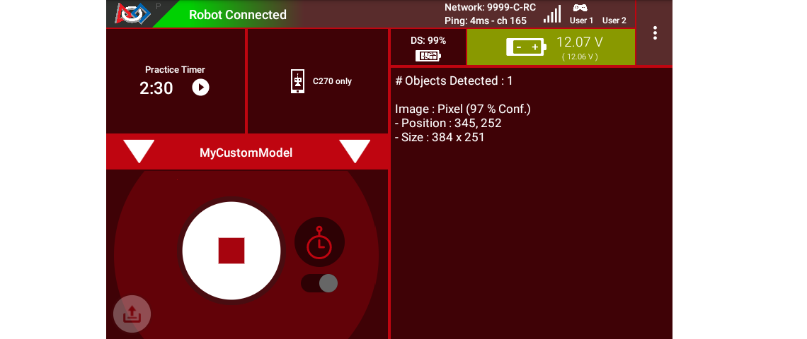 Click the “Save OpMode” button, then run the OpMode from the Driver Station. The Robot Controller should use the new CENTERSTAGE inference model to recognize and track the Pixel game element.