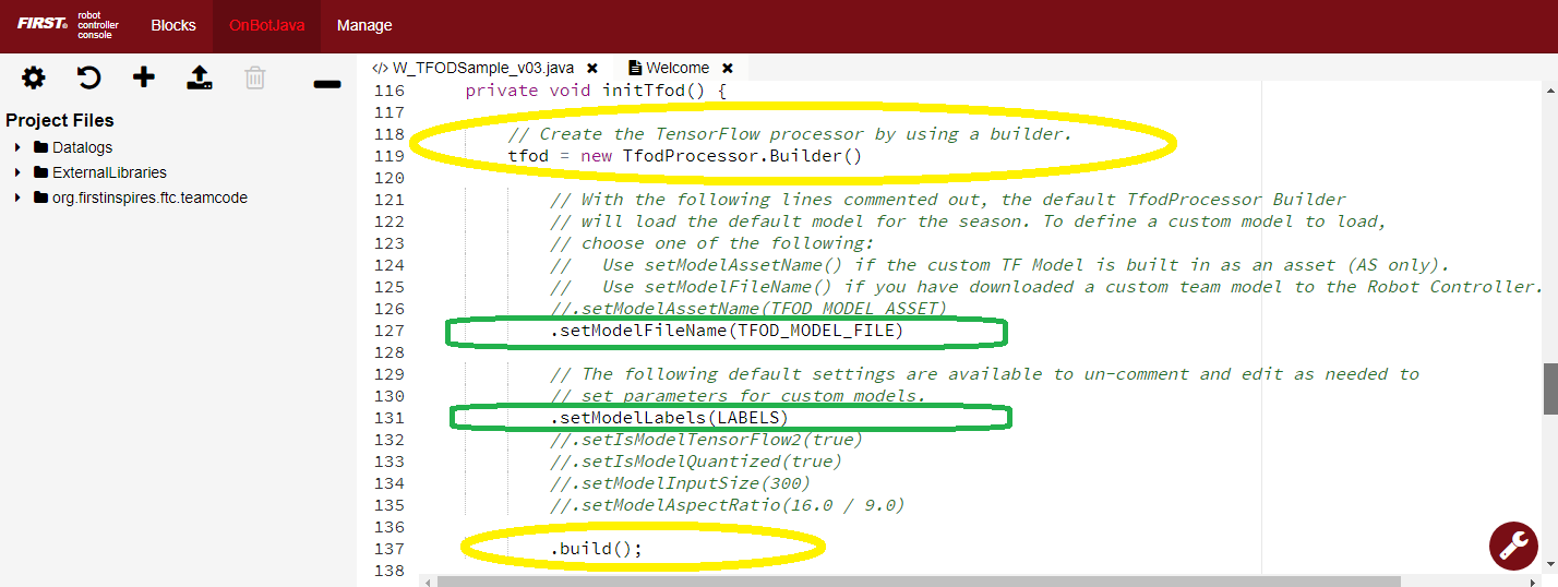 This tutorial describes the regular, or Builder, version of the FTC Java Sample OpMode for TensorFlow Object Detection (TFOD).
