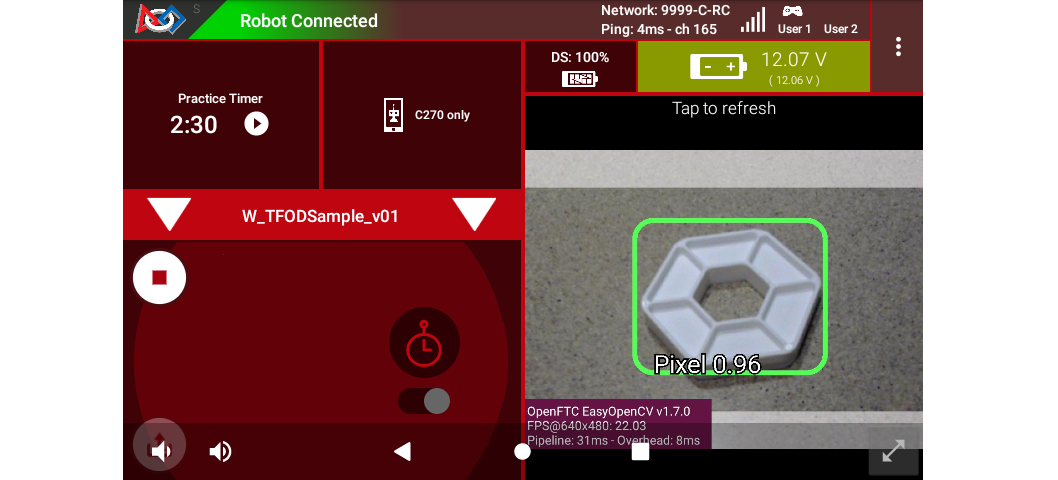 Congratulations! At this point the Sample OpMode and your camera are working properly. Ready for a custom model?