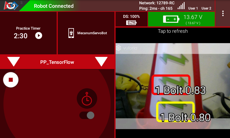 The default minimum confidence threshold provided in the Sample Op Mode is only provided as an example; depending on local conditions (lighting, image wear, etc…) it may be necessary to lower the minimum confidence in order to increase TensorFlow’s likelihood to see all possible image detections.
