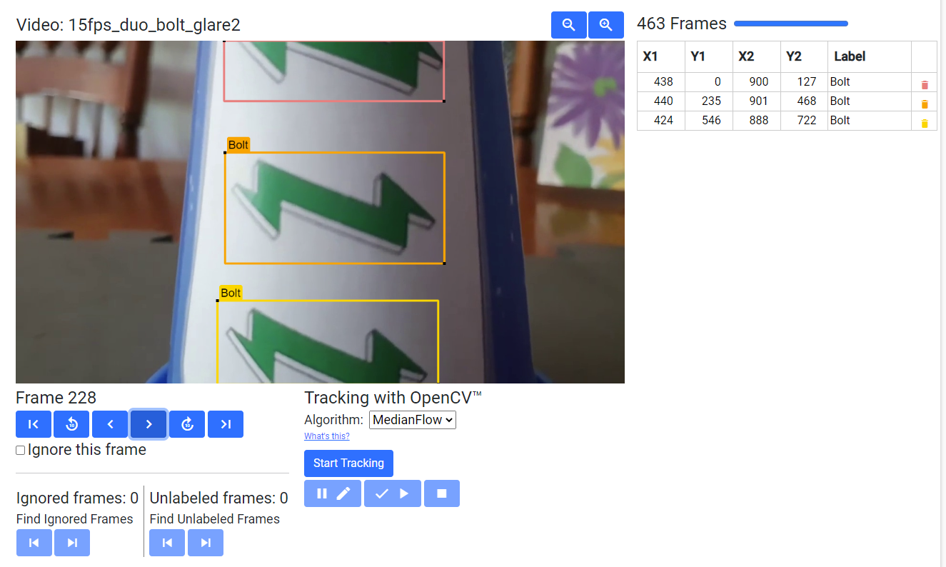 To provide some additional context on this, here are a few examples of labeled frames that were used to train the default TensorFlow model.